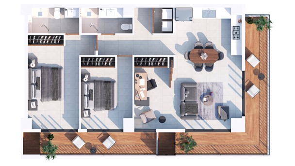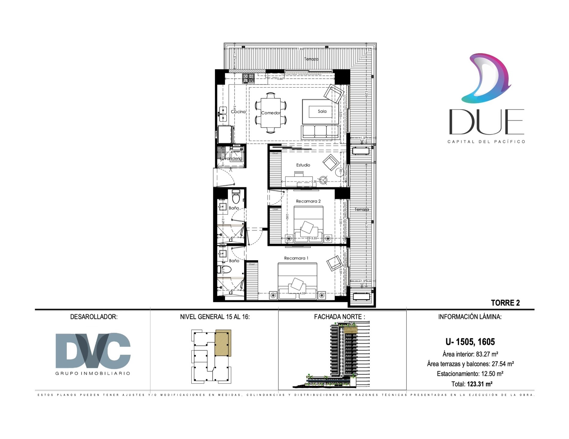 Recámaras: 2 REC + Estudio Baños: 2 Tamaño: 123.31 m2